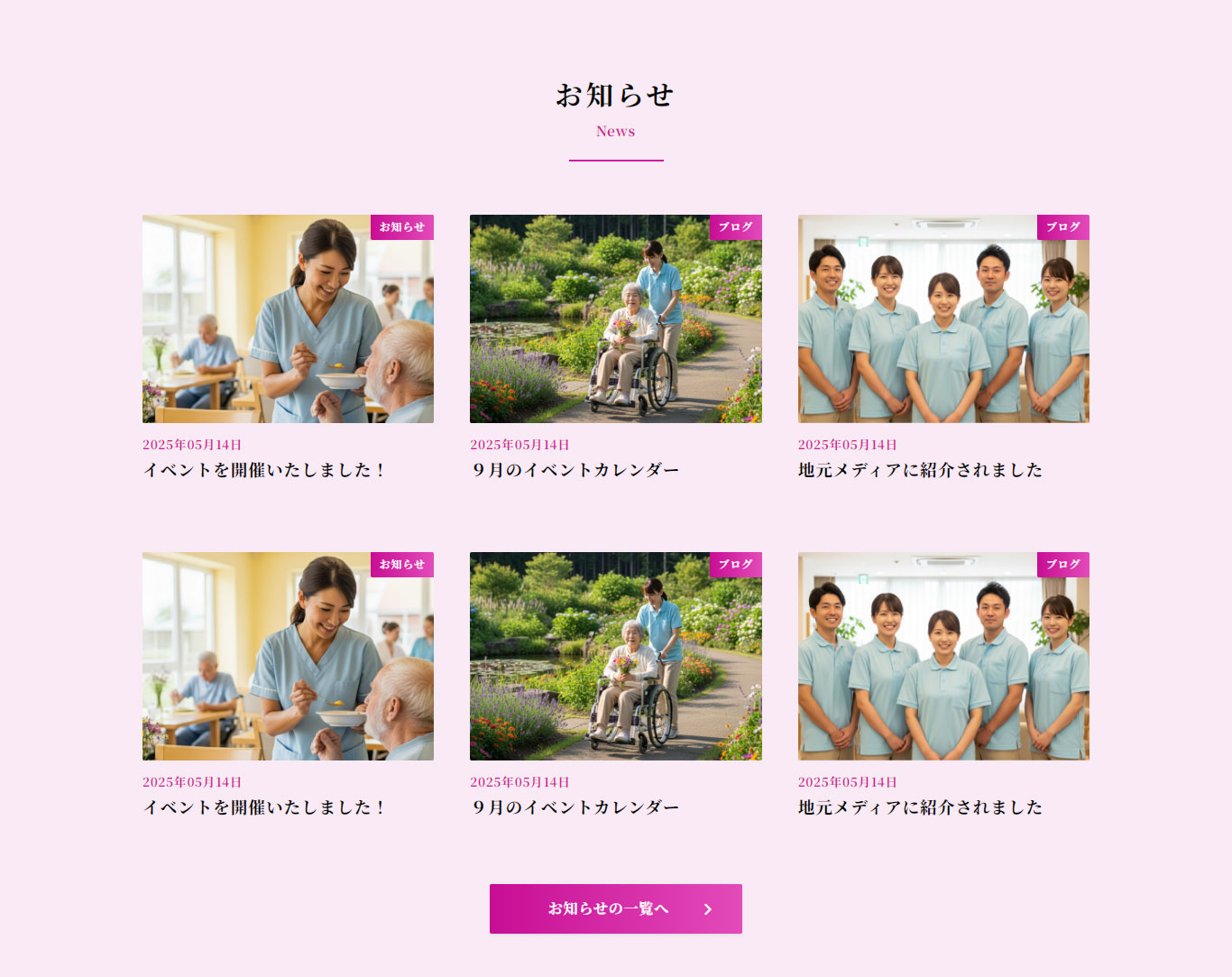 - ・トップページに表示されるお知らせ:サムネイル付き