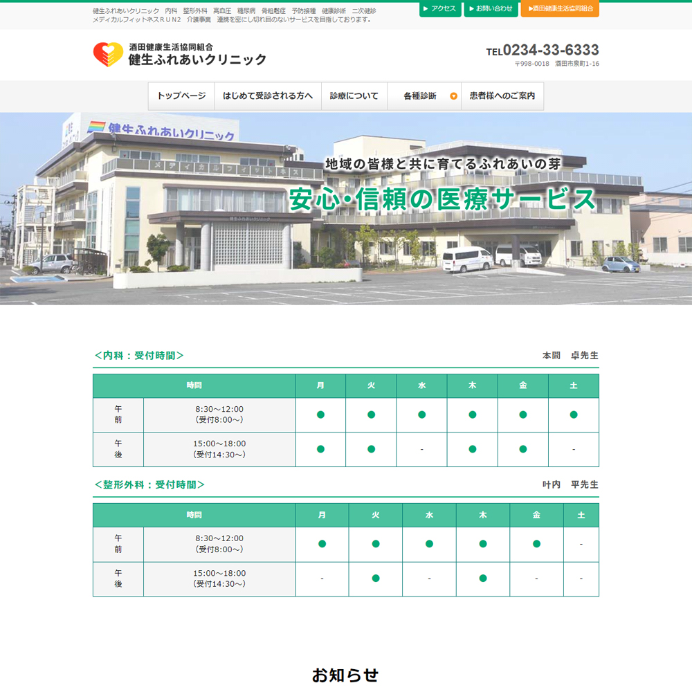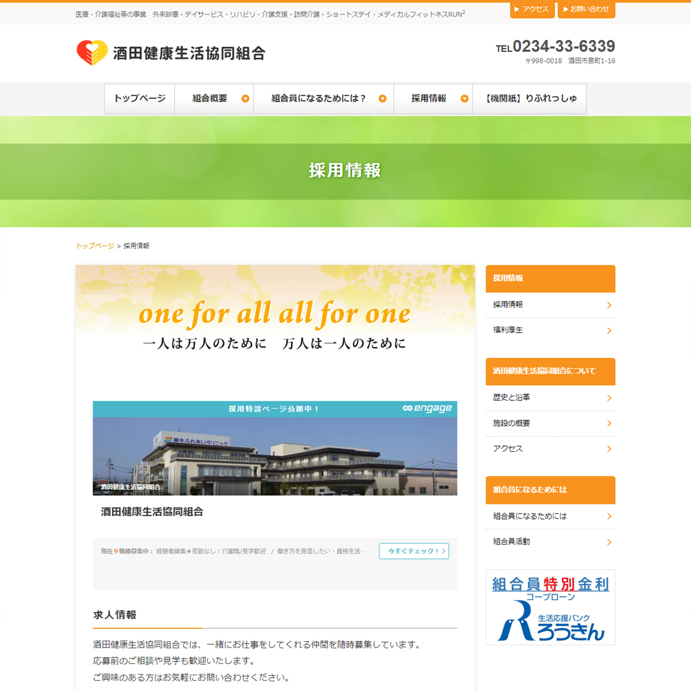 酒田健康生活協同組合様のホームページ構築制作をいたしました。